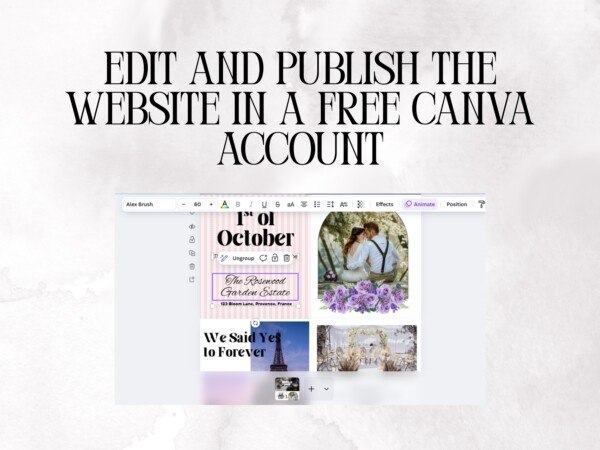 This elegant Canva wedding website template makes sharing your special day easier than ever. With a beautiful, modern layout and easy-to-edit sections, you can give your guests all the essential wedding details in one place, no coding required.