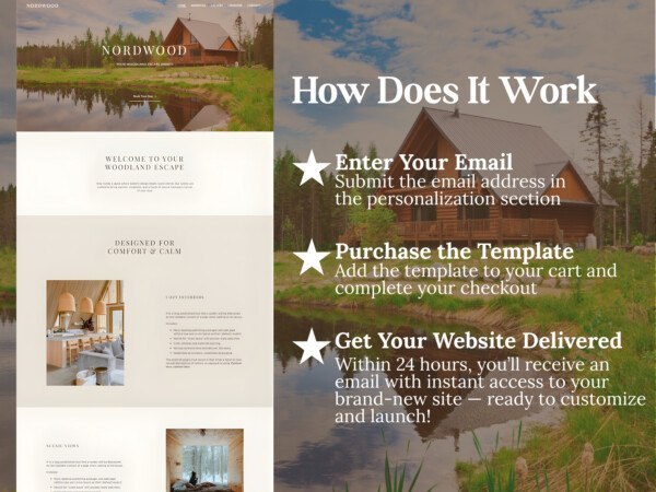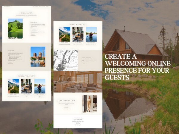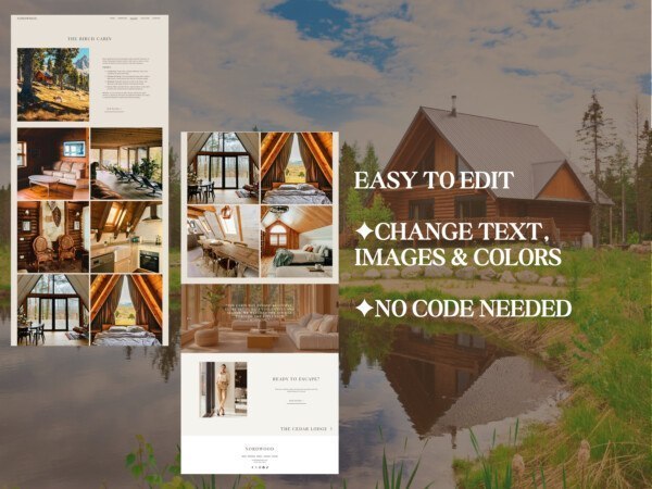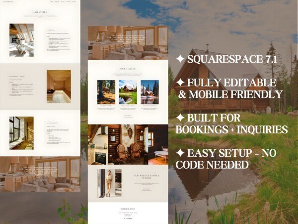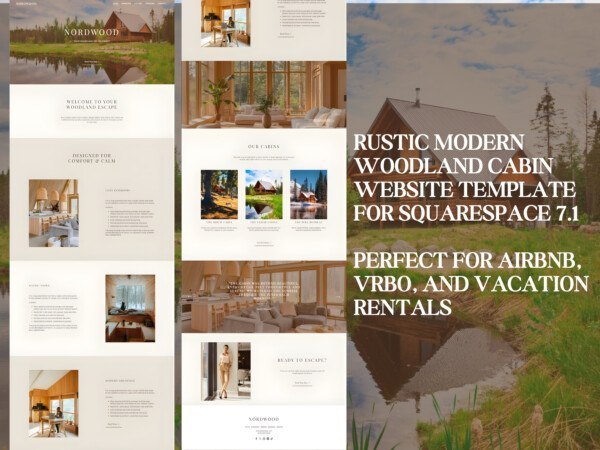 Transform your rental business with this Rustic Modern Airbnb Cabin Squarespace 7.1 Template, thoughtfully designed for real estate display, Airbnb hosts, VRBO listings, boutique hotels, cabins, and guest houses.