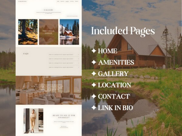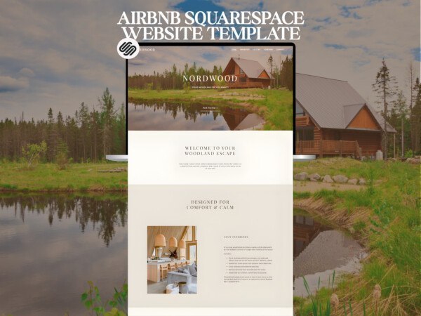 Airbnb Squarespace Template, Real Estate, Rustic Modern Woodland Cabin, Vacation Rental, Hotel, Guest House, VRBO, Booking Website