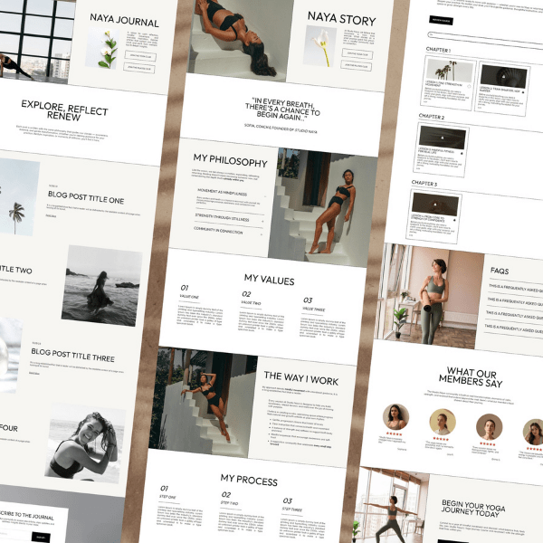 Perfect for yoga teachers, pilates coaches, online studios, and wellness creators who want a clean, modern and minimal design.