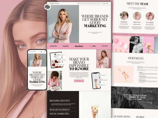 This Pink Premium Marketing Agency Squarespace Template features a clean layout, playful pink accents, elegant typography, and conversion focused sections to help you attract clients and grow your business fast.