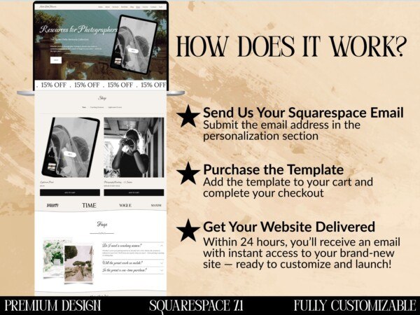 1. Send us your Squarespace email, we will send access to the website within 24 hours!